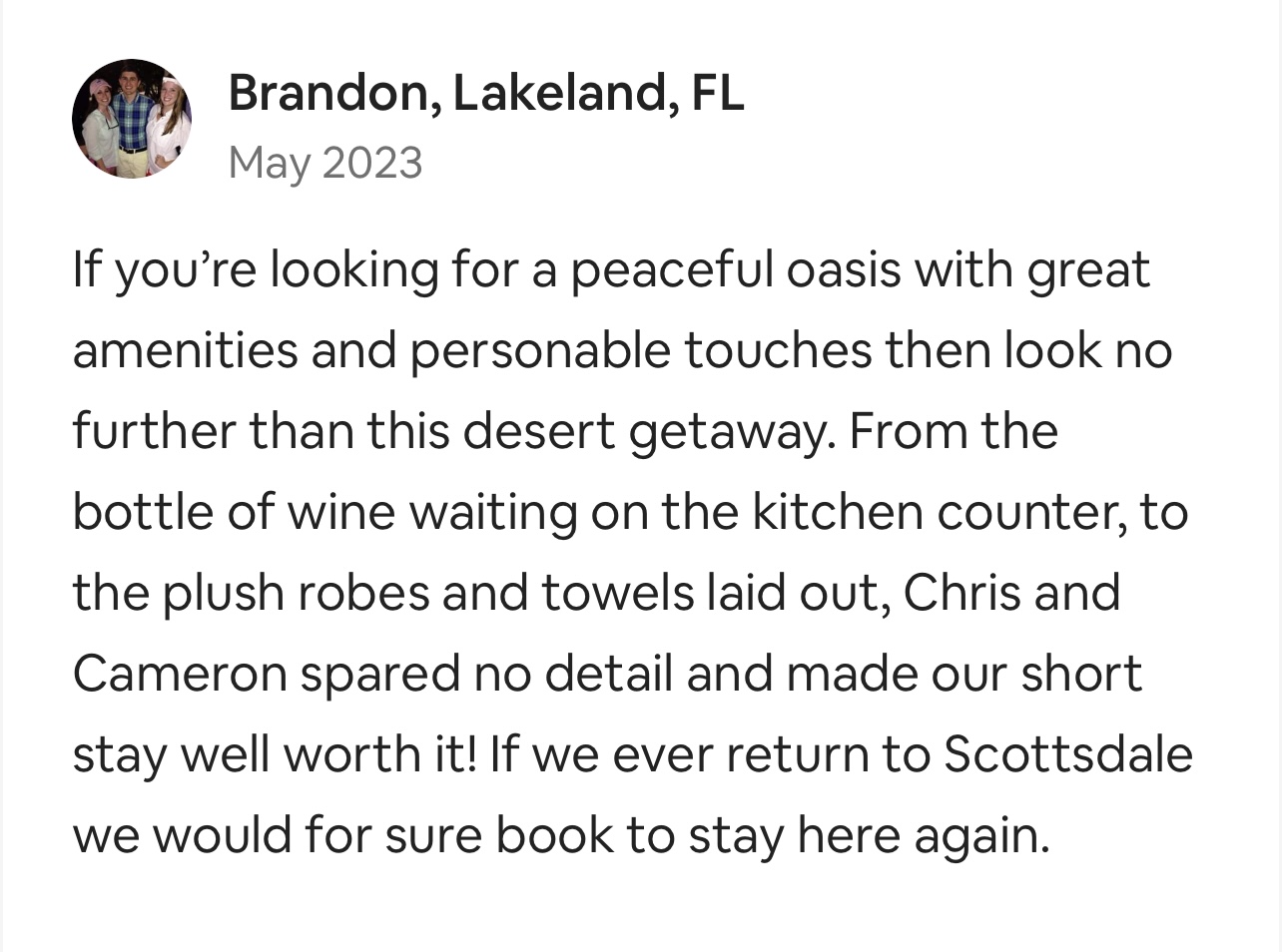 We work with people who want a short term vacation rental in Arizona, but value their time too much to manage everything needed for a high-ROI property.